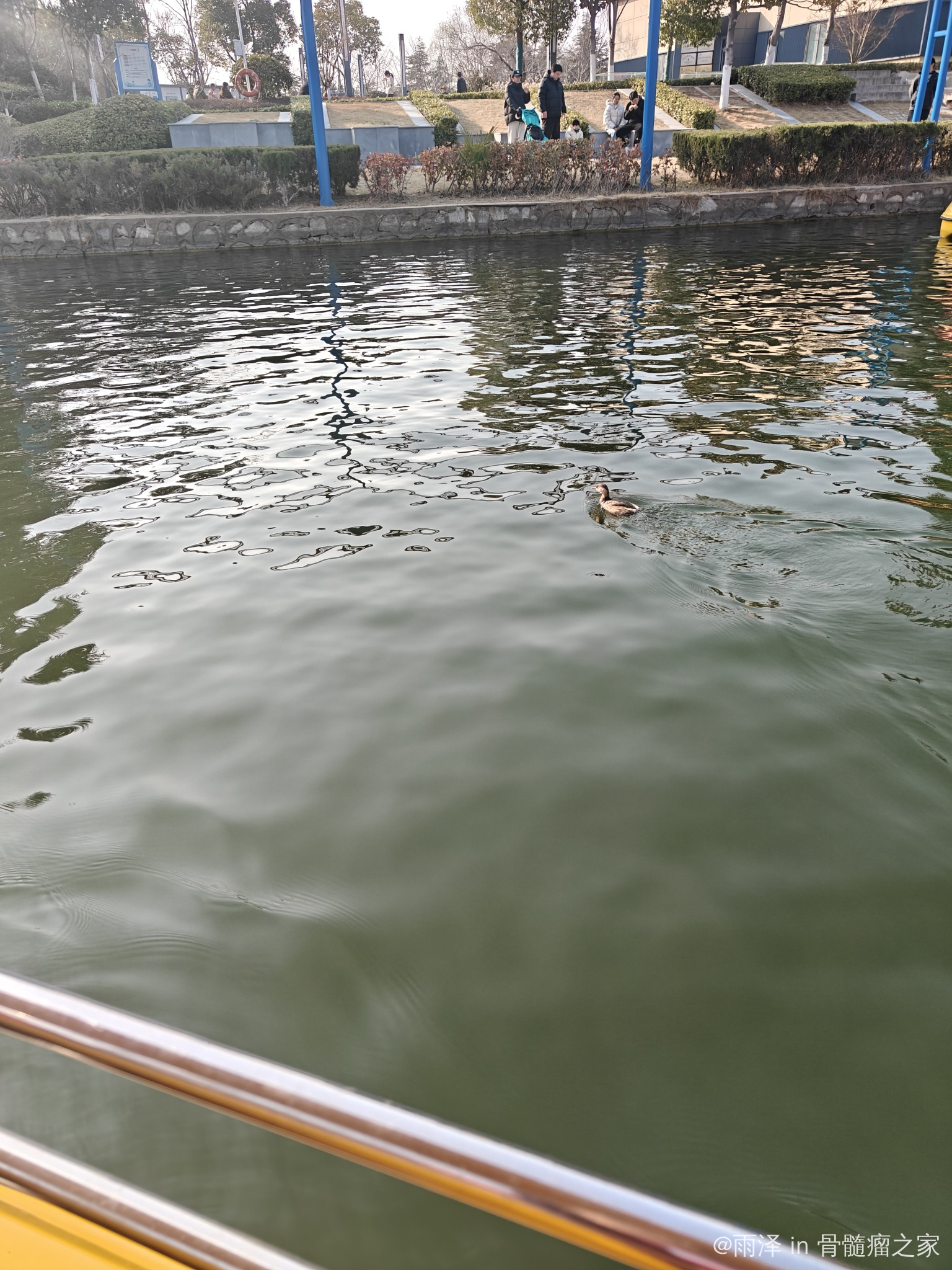 天气越来越暖和了,出去户外走走看看很舒服,真是春江水暖鸭先知,小鸭子在游船旁边一点都不害怕,惬意的很呐~
