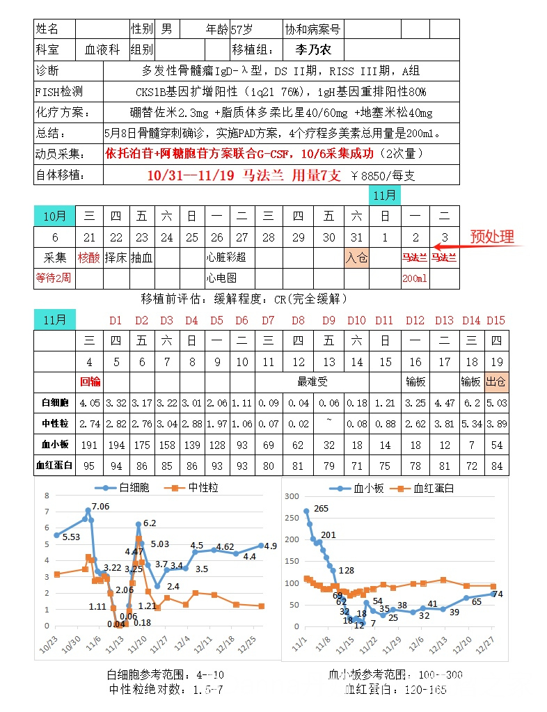 一位骨髓瘤群友原计划进行自体移植,