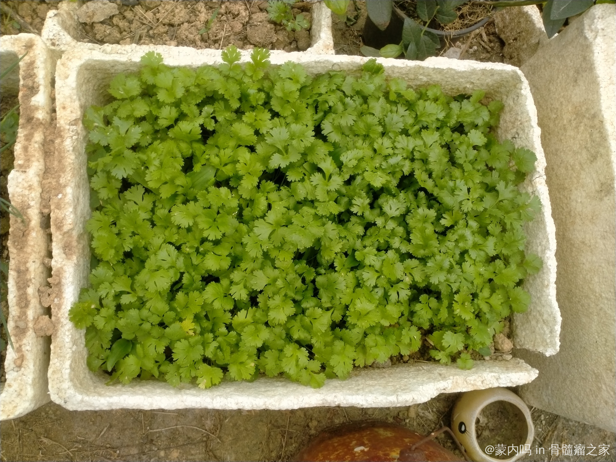 绿意盎然的小菜园:香菜、小葱,皇帝菜、西红柿,是不是很治愈呢!